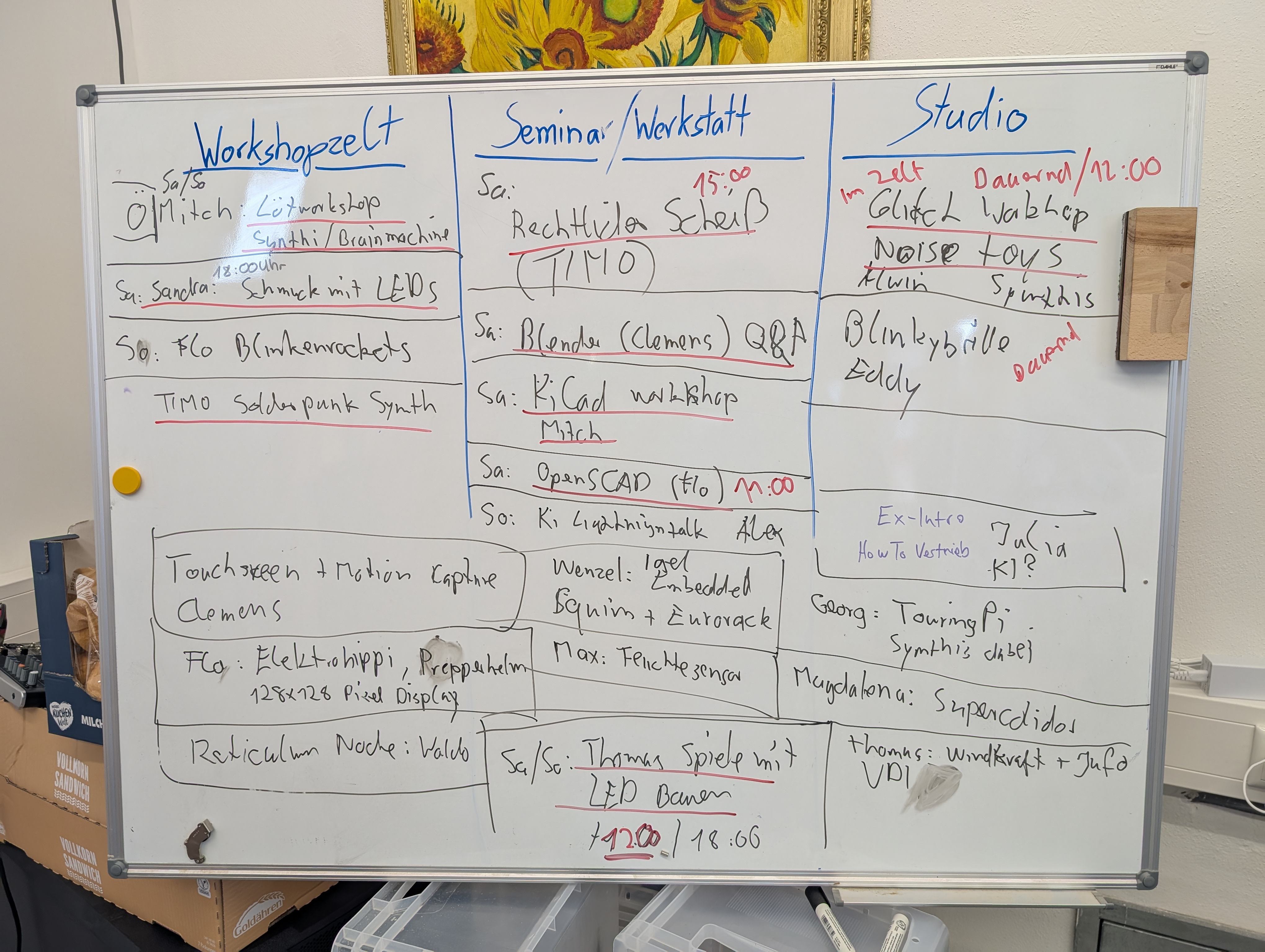 An diesem Tag wird der Plan gemeinsam gestaltet. Jede Person bringt Ideen für Sessions, Workshops und Spontan-Events mit.